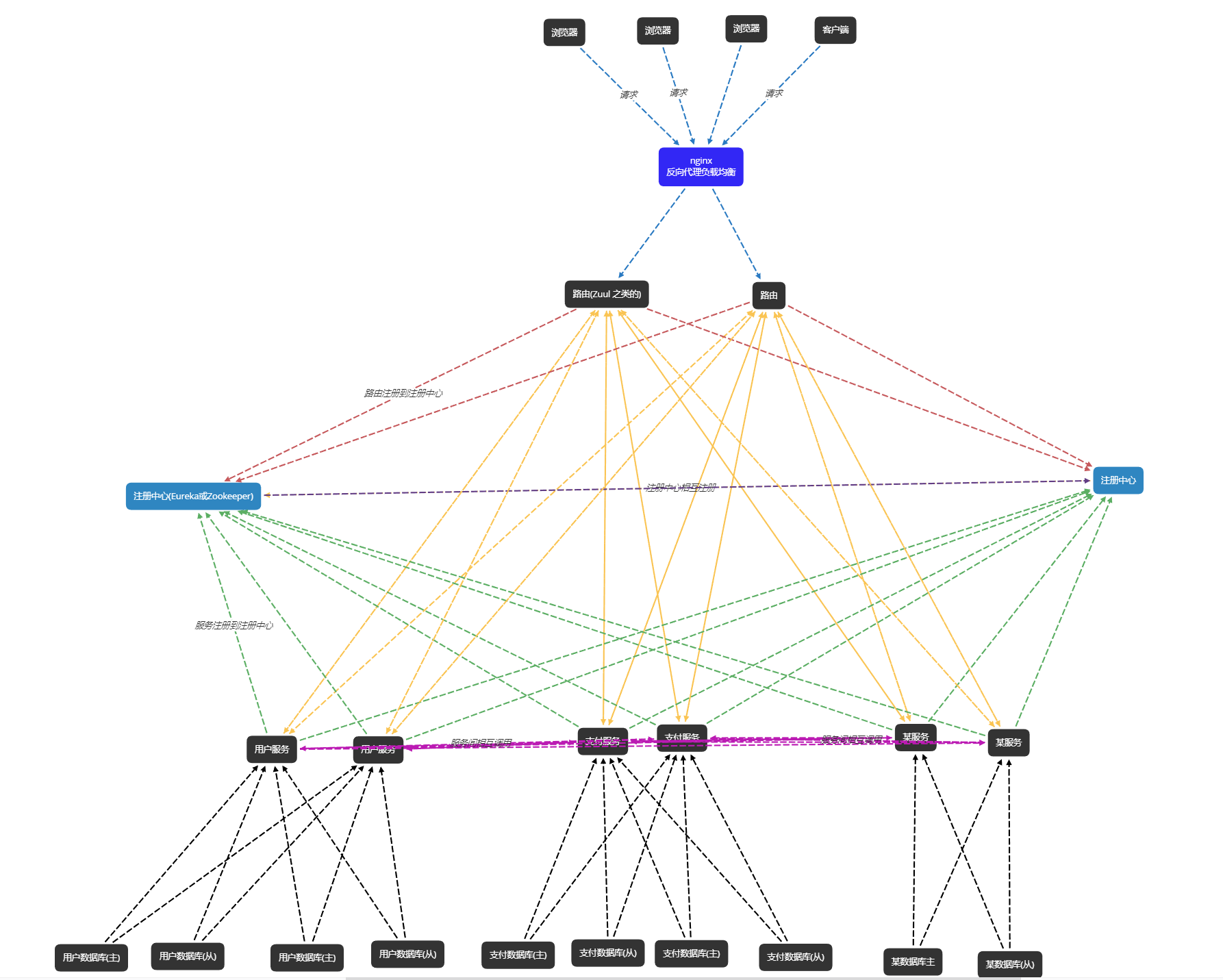 ####路由层 路由层通过请求的URL或者其他参数来,使请求到指定的服务,通过负载均衡使请求到相对的服务上,部署多个路由当其中一个路由宕机之后也项目依然可以正常